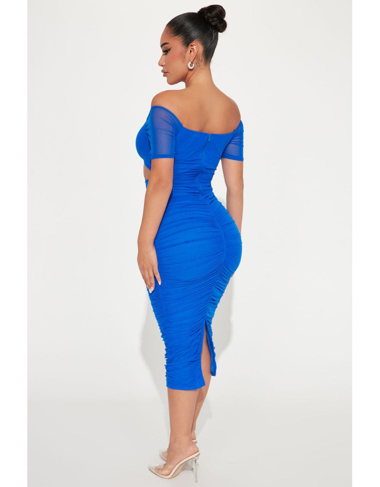 فستان أزرق تحت الركبة
